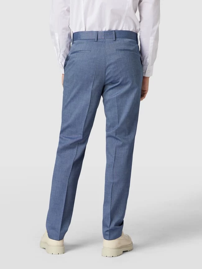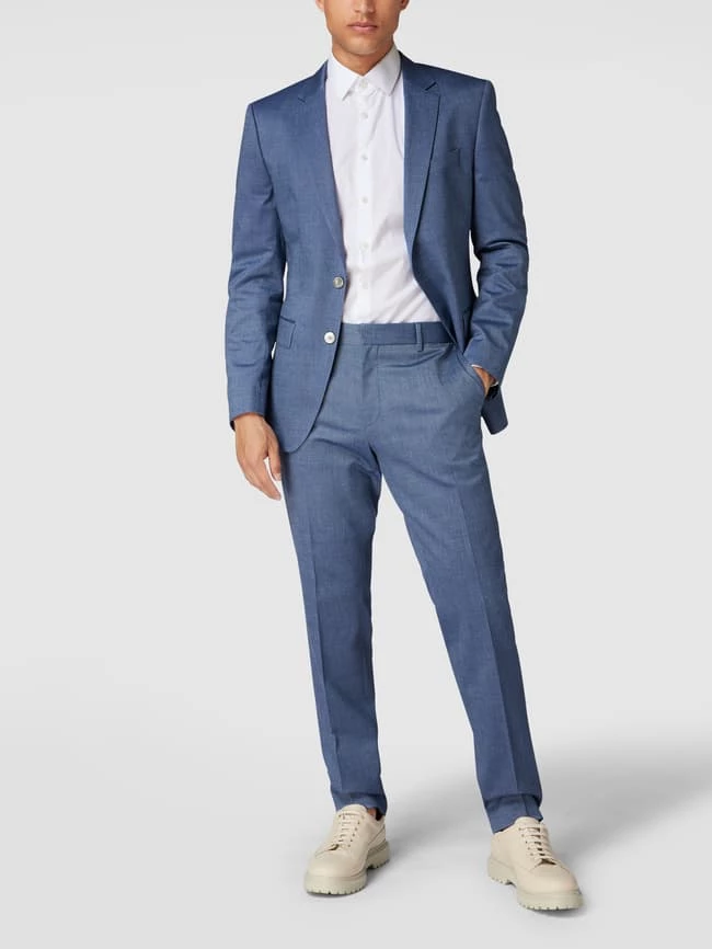 Die Anzughose von BOSS ist aus einem Schurwoll-Mix mit Stretch-Anteil gefertigt und im Slim Fit gehalten. Sie kommt mit Strukturmuster, französischen Eingrifftaschen und Bügelfalten.