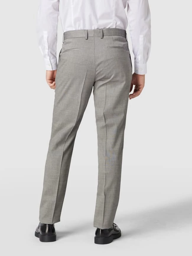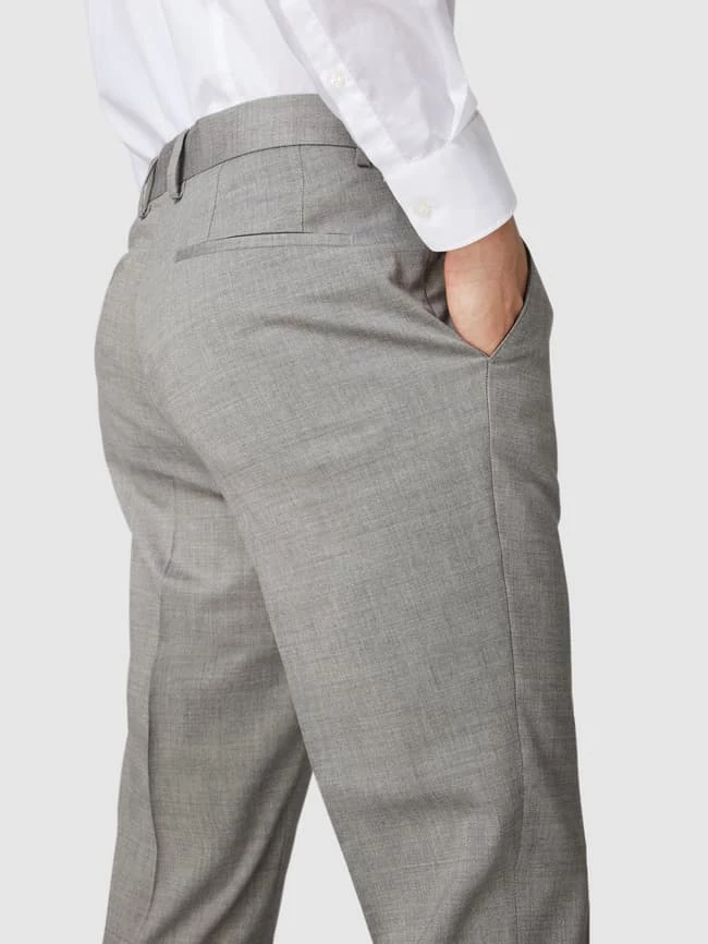 Die Anzughose von BOSS ist aus einem Schurwoll-Mix mit Stretch-Anteil gefertigt und im Slim Fit gehalten. Sie kommt mit Strukturmuster, französischen Eingrifftaschen und Bügelfalten.