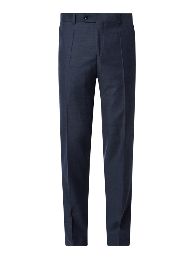 Die Anzughose von Carl Gross ist aus Schurwolle gefertigt und gerade geschnitten. Sie zeigt sich mit Reißverschluss, Eingrifftaschen und Bügelfalten.