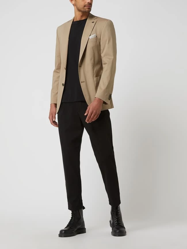 Das Sakko von Carl Gross ist aus einer Baumwollmischung mit Stretch-Anteil gefertigt. Es zeigt sich im Modern Fit mit fallendem Revers, aufgesetzten Taschen und Kissing Buttons.
