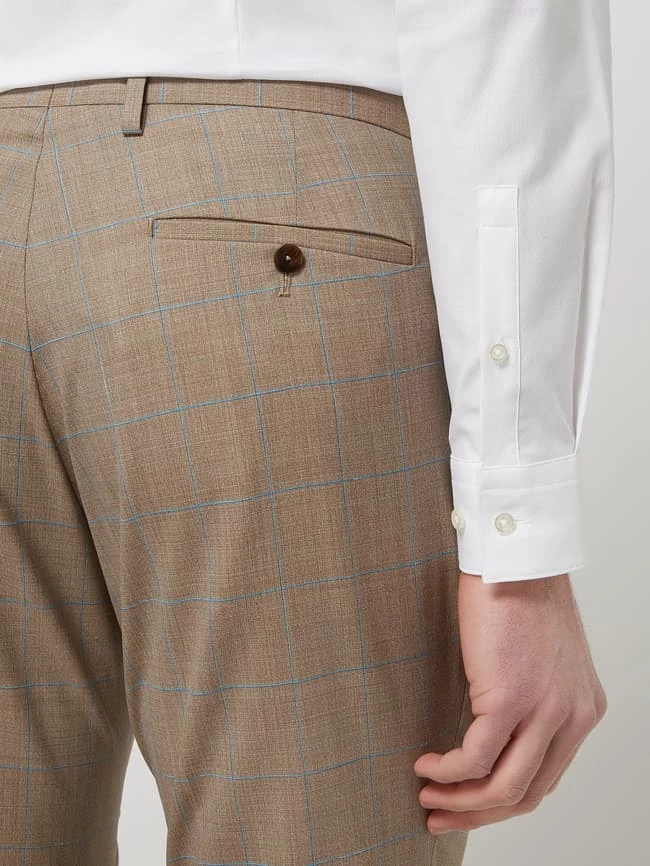 Die Anzughose von CG Club of Gents ist aus reiner Schurwolle gefertigt und zulaufend geschnitten. Sie zeigt sich mit Fensterkaro, französischen Eingrifftaschen und geknöpften Leistentaschen am Gesäß. Die Kollektion ‘Savile Row’ ist in Anlehnung an die berühmte, gleichnamige Gasse im Londoner Stadtteil Mayfair entstanden, die für ihre Herrenschneiderkunst bekannt ist.