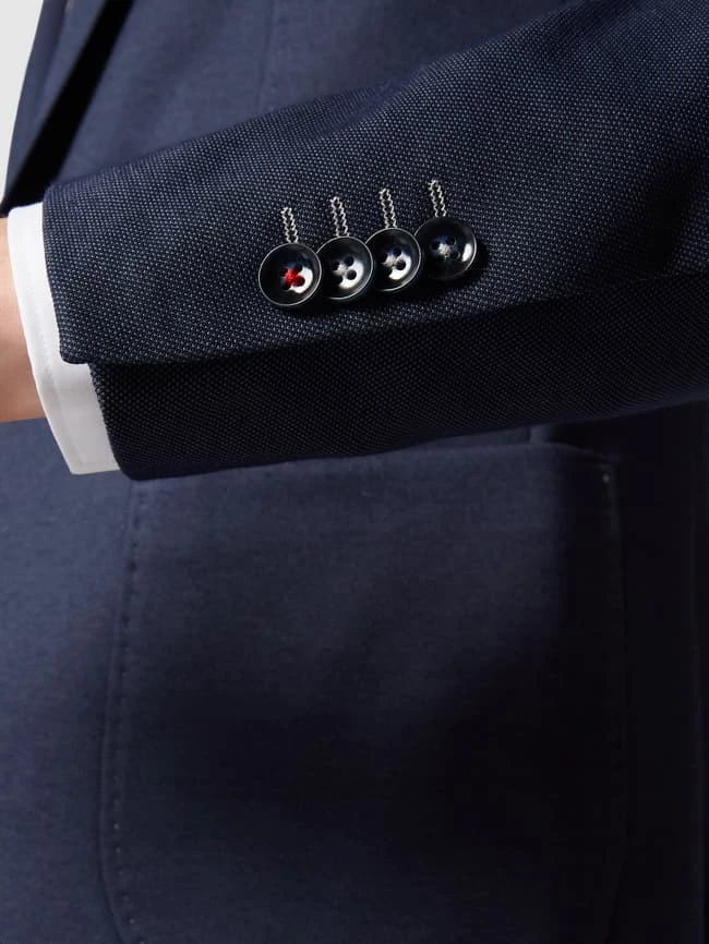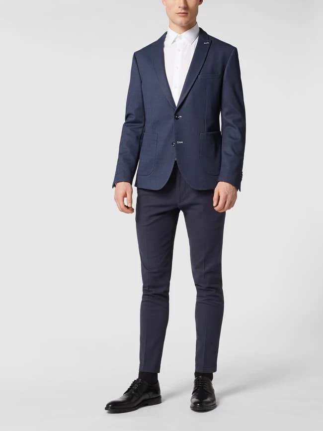 Das 2-Knopf-Sakko von CINQUE ist aus einer Materialmischung mit Viskose-Anteil gefertigt. Es kommt im Slim Fit mit fallendem Revers, aufgesetzten Taschen und Handstichkanten.