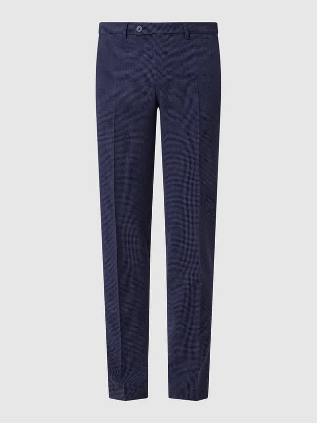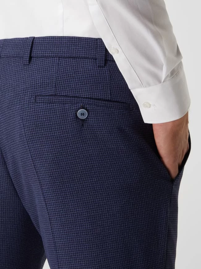 Die Anzughose von DIGEL ist aus einer Materialmischung mit Viskose- und Stretch-Anteil gefertigt. Sie kommt im Slim Fit mit Hahnentritt-Dessin, französischen Eingrifftaschen und Bügelfalten.