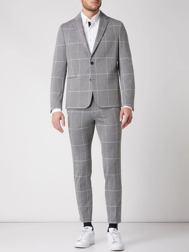 Das 2-Knopf-Sakko von DRYKORN ist aus einer Materialmischung mit Schurwoll-, Viskose- und Stretch-Anteil gefertigt. Es zeigt sich in schmaler Passform mit Fensterkaro, fallendem Revers und Paspeltaschen.