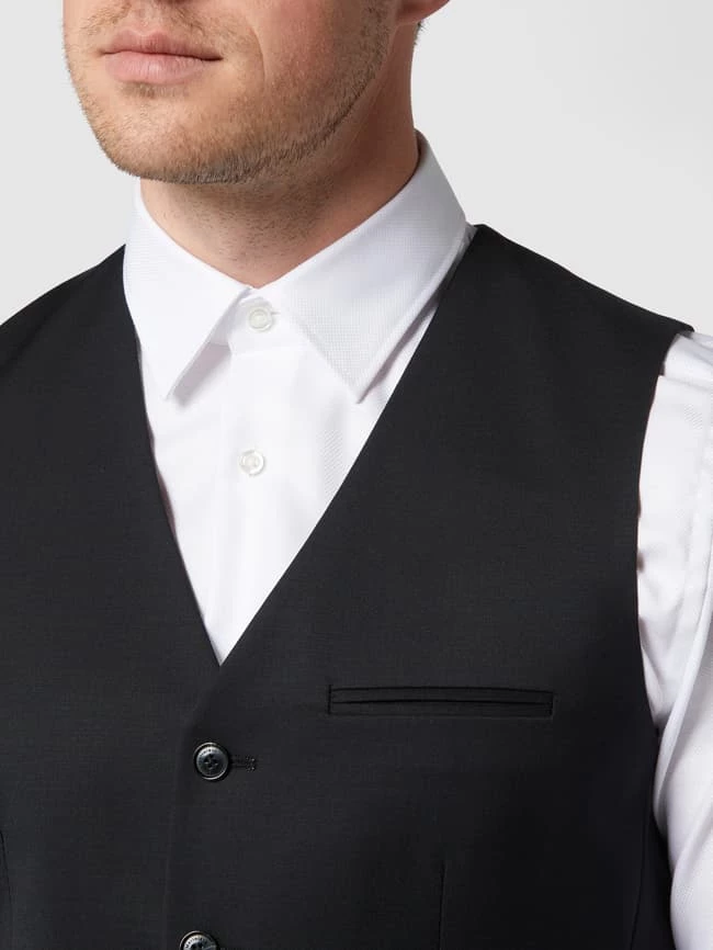 Die Weste von Matinique ist aus einer Wollmischung mit Stretch-Anteil gefertigt und schmal geschnitten. Sie kommt mit V-Ausschnitt, Knopfleiste und Paspeltaschen.