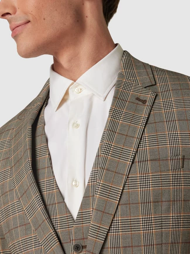 Das Sakko von MCNEAL ist aus einem Material-Mix mit Stretch-Anteil gefertigt und gerade geschnitten. Es zeigt sich mit Streifenmuster sowie Reverskragen.