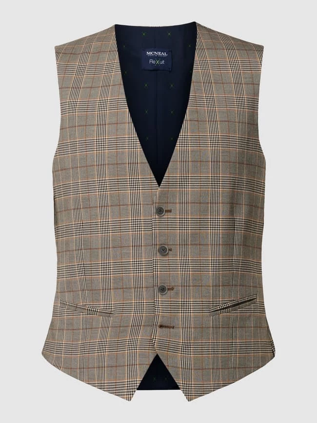 Die Weste von MCNEAL ist aus einem Material-Mix mit Stretch-Anteil gefertigt und gerade geschnitten. Sie zeigt sich mit Streifenmuster sowie Paspeltaschen.