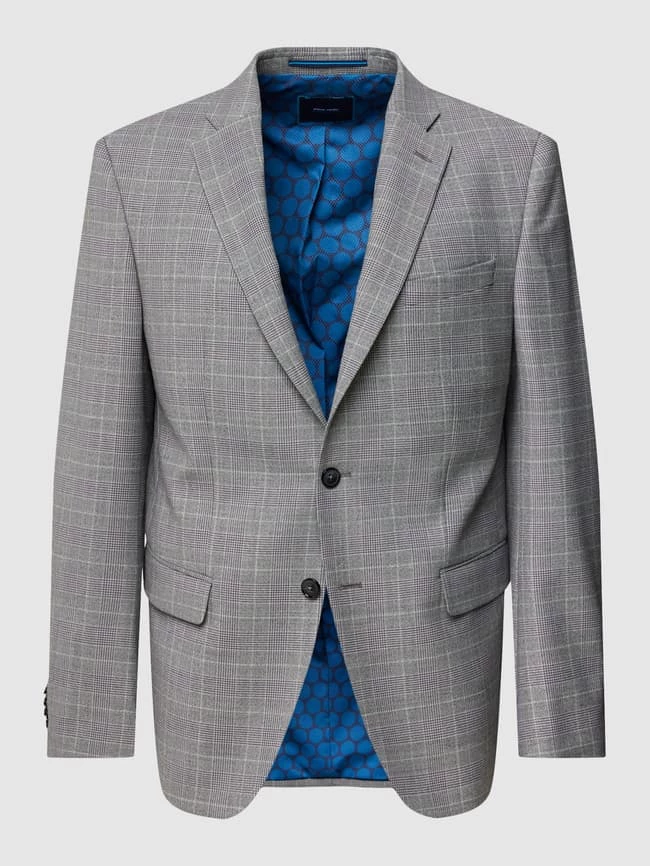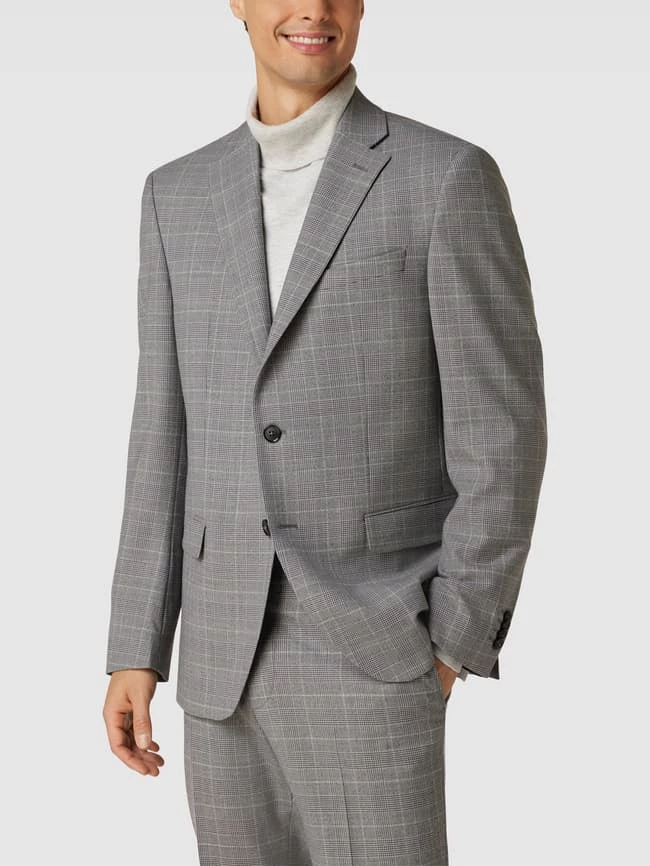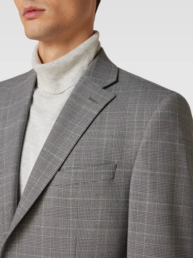 Das 2-Knopf-Sakko von Pierre Cardin ist aus einem Schurwoll-Mix mit Stretch-Anteil gefertigt und im Regular Fit gehalten. Es kommt mit Glencheck-Muster, Reverskragen und Pattentaschen.