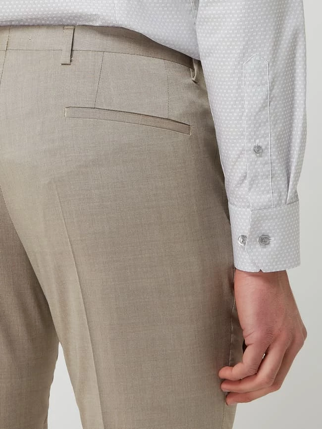 Die Anzughose von ROY ROBSON ist aus einer Viskosemischung mit Schurwoll- und Stretch-Anteil gefertigt. Sie kommt in gerader Passform mit französischen Eingrifftaschen und Leistentaschen.