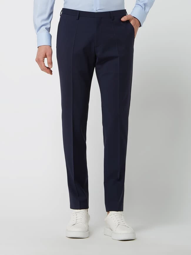 Die Anzughose von ROY ROBSON ist aus einer Schurwollmischung mit Stretch-Anteil gefertigt. Sie kommt mit schmalem Bein, französischen Eingrifftaschen und Bügelfalten.
