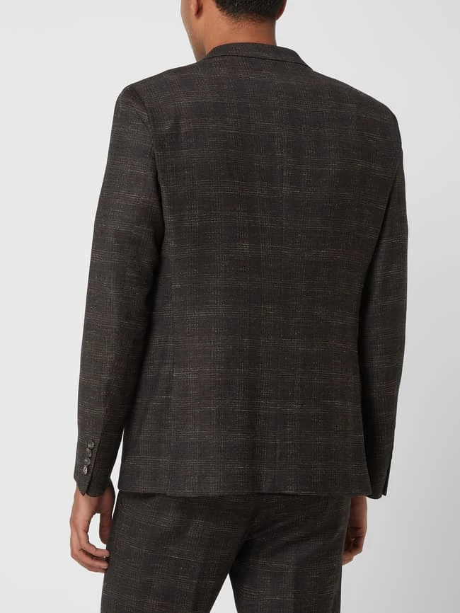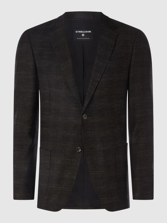 Das Sakko von Strellson ist aus einer Wollmischung mit Leinen- und Stretch-Anteil gefertigt. Es zeigt sich in schmaler Passform mit Karomuster, fallendem Revers und aufgesetzten Taschen.