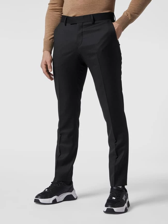 Die Anzughose von Tiger of Sweden ist aus reiner Wolle gefertigt und schmal geschnitten. Sie kommt mit Webmuster, verschiedenen Taschen und Bügelfalten. Die Passform unterstreicht eine schlanke Silhouette.