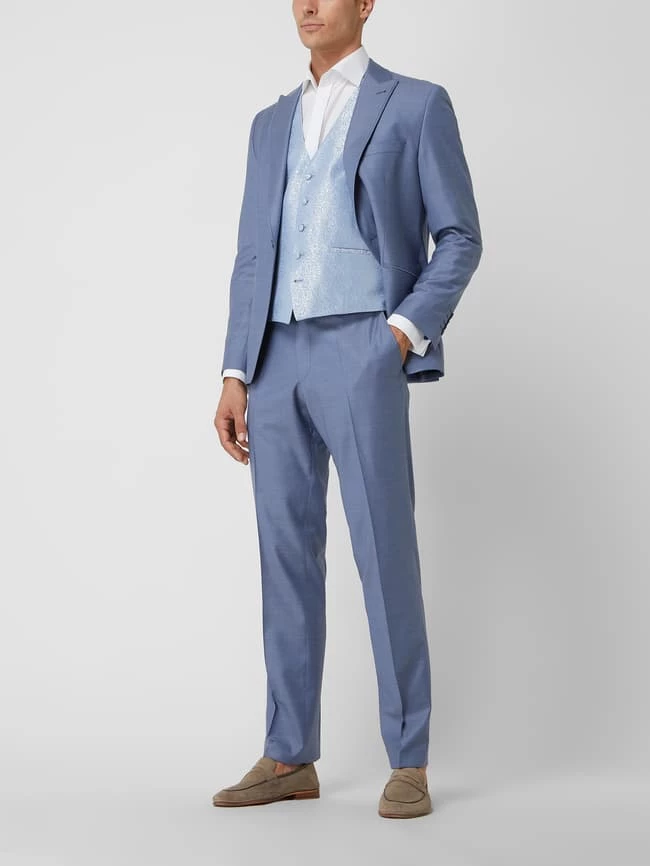Die Anzughose von WILVORST ist aus einem Woll-Elasthan-Mix gefertigt. Sie kommt in gerader Passform mit feinem Webmuster, französischen Eingrifftaschen und Bügelfalten.