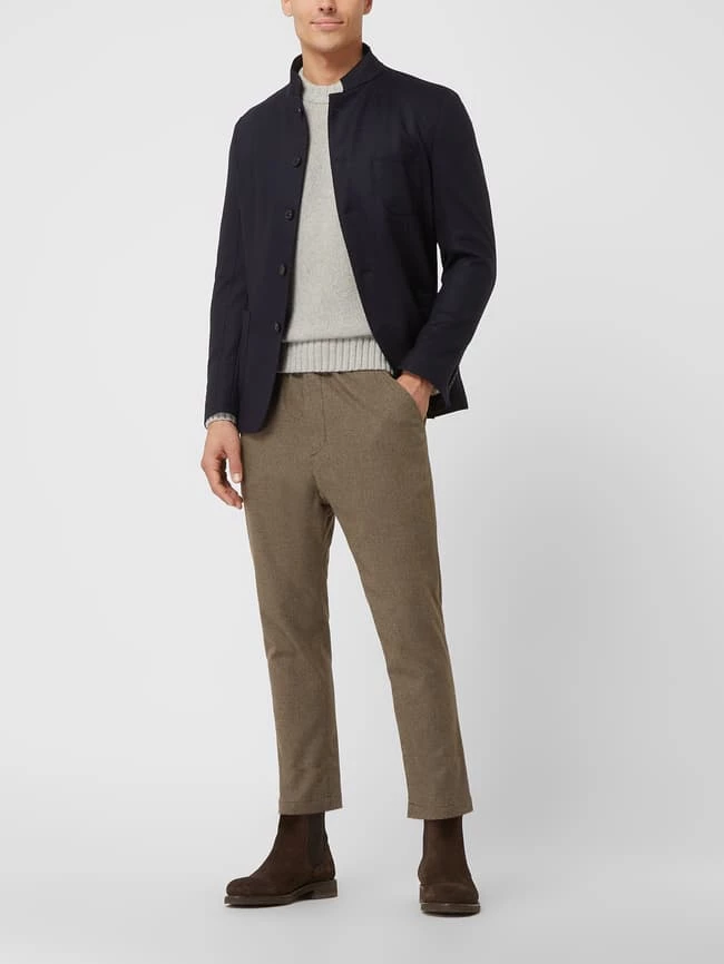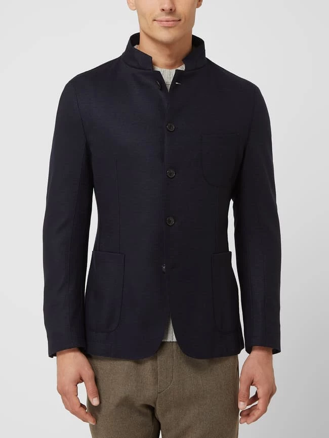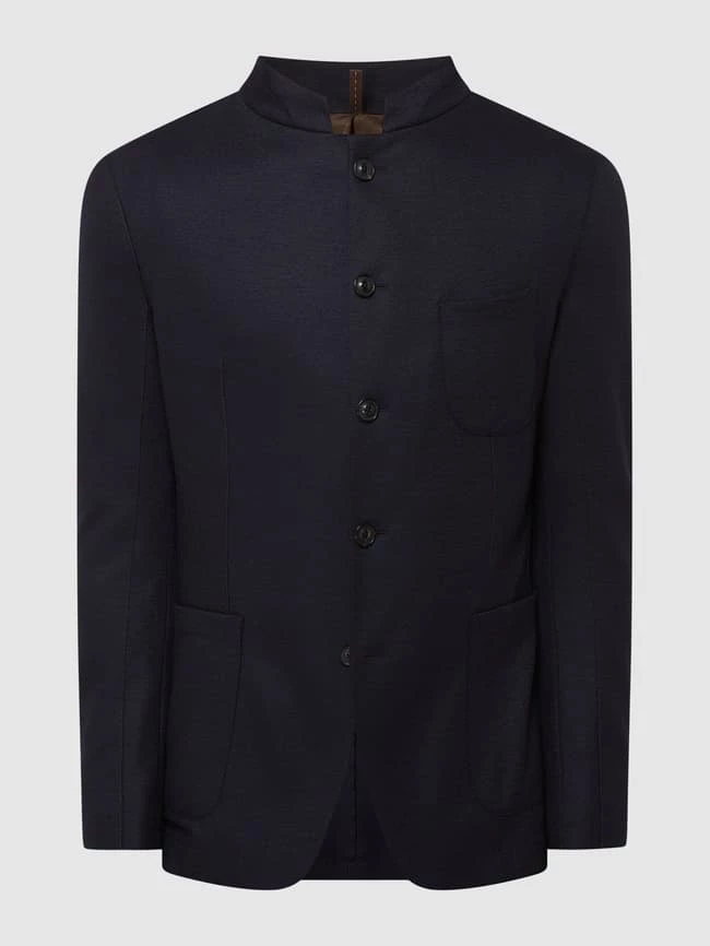 Das Sakko von Windsor ist aus einer Wollmischung gefertigt und kommt im Shaped Fit. Es zeigt sich mit Stehkragen, Knopfleiste und aufgesetzten Taschen.